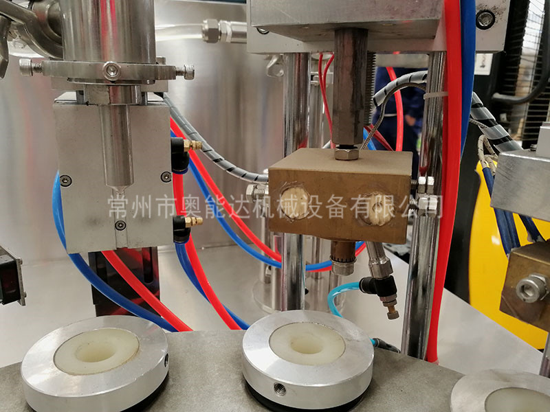 2、軟管試封,因軟管規(guī)格不同,使用不同模具加以配套,安裝完整模具座后,要調(diào)整高度,使管口達到封尾高度。開啟加熱開關(guān),設(shè)定內(nèi)加熱和外加熱兩溫度,通電以后電流表有指示,溫度應(yīng)逐步迭加,達到理想的封口溫度。(通常情況內(nèi)加熱設(shè)定250度,外加熱設(shè)定210度),等待溫度上升到設(shè)定值后即可灌裝。